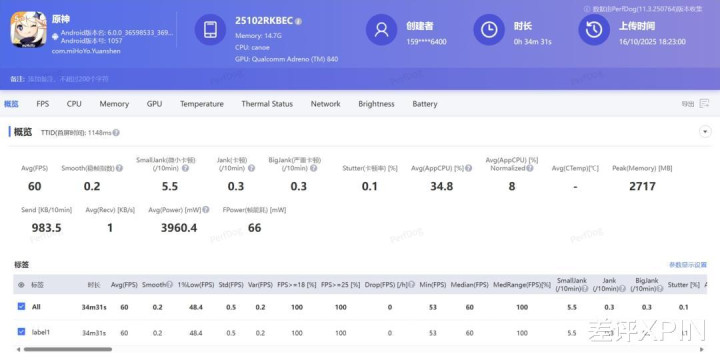 不仅是跑分,游戏也同样很狂暴。原神-须弥城跑图以 3.9w,60 帧的成绩轻松秒杀。