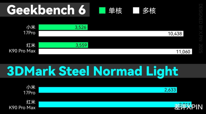 这个处理器在小米 17 Pro 上,由于背屏和小尺寸,没怎么使出全力。而在 K90 Pro Max 则狂暴许多。